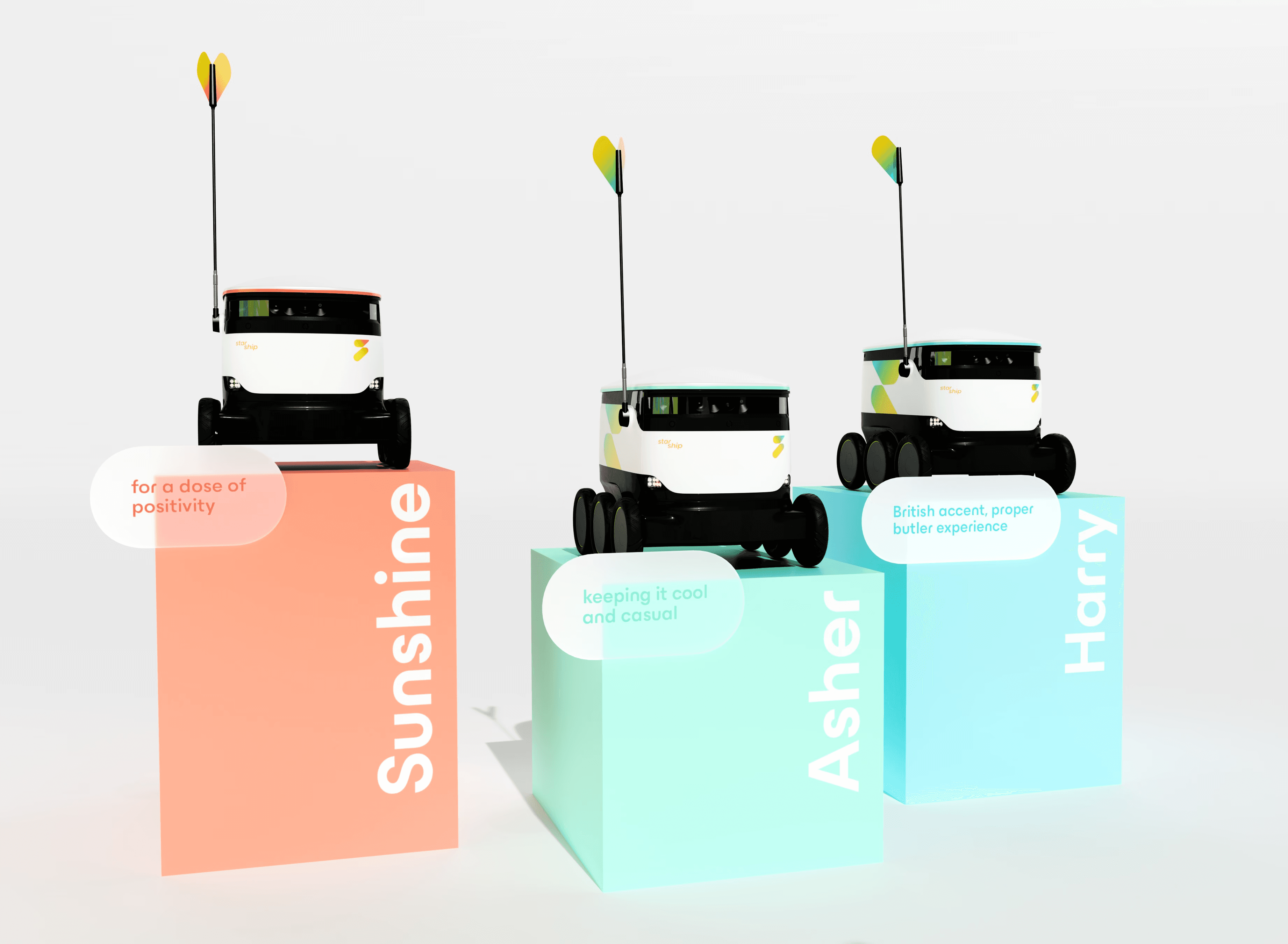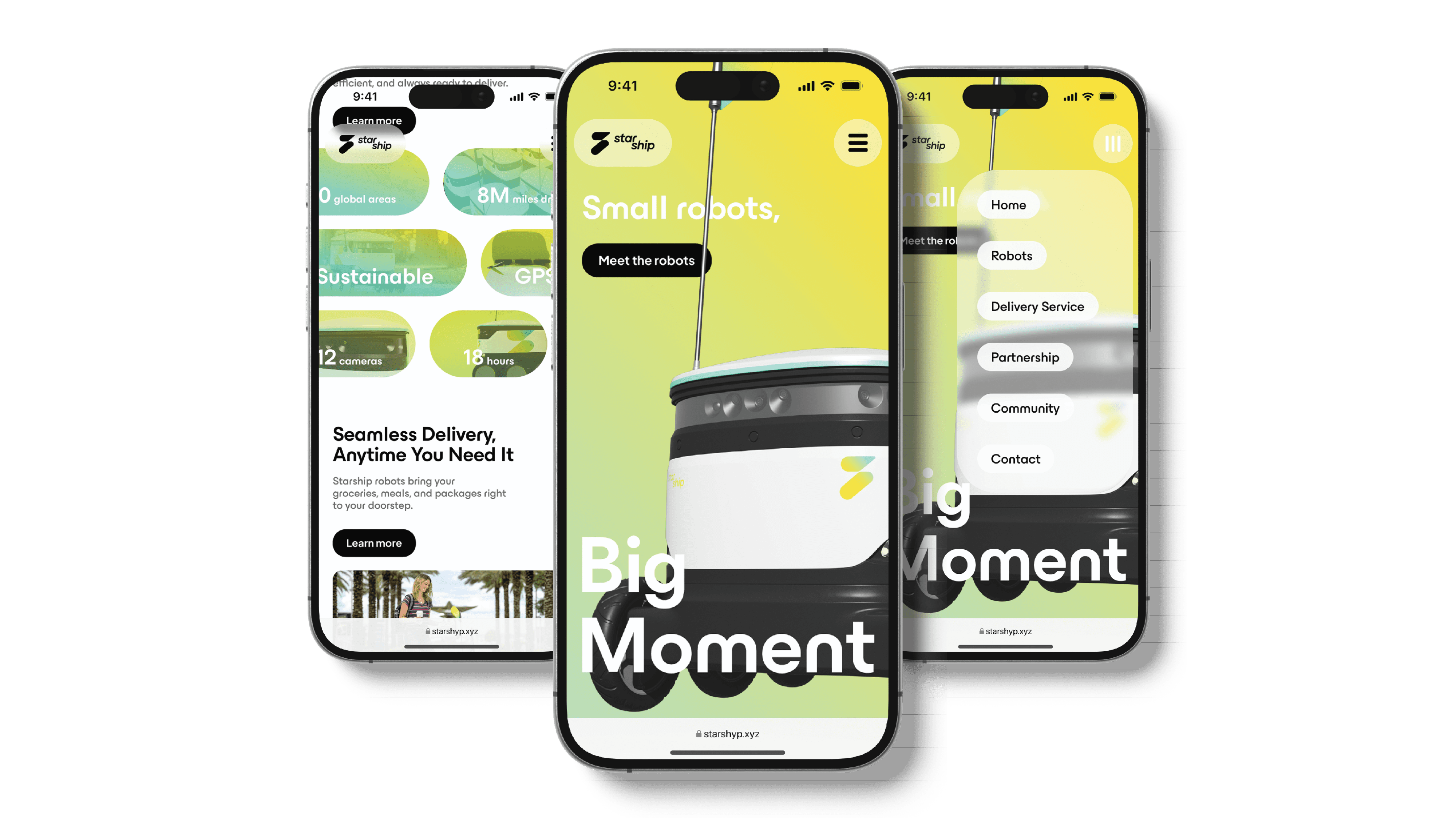 The new visual identity draws inspiration from the form and friendly personalities of the iconic Starship robots. The identity system represents the robots’ features and Starship’s core values; approachable, reliable, progressive, and community-focused.